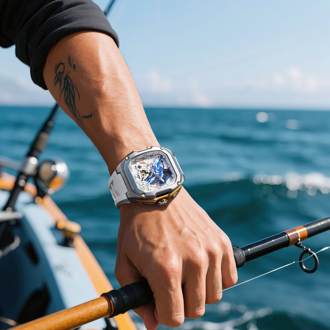 LILUOKE Quartz Mechanical Watch for Men – Artistic Fish Dial, Stainless Steel Case, Waterproof Sport Watch with Silicone Strap(DT-LK9029G) - DT-LK9029G-01
