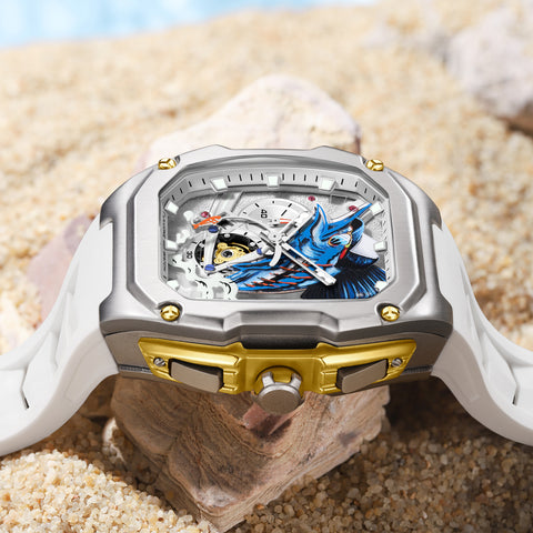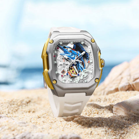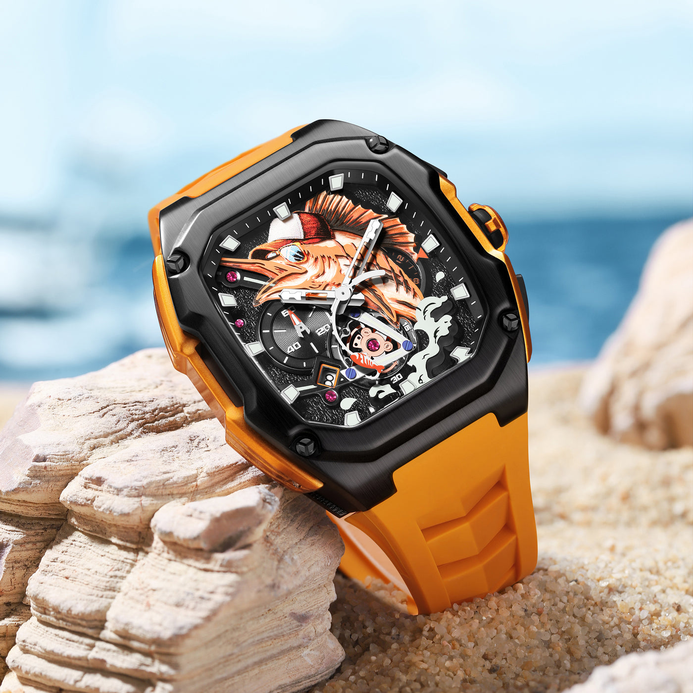 【Unique Artistic Dial Design】:Stand out with a bold, hand-painted dial featuring a dynamic fish wearing a cap — a blend of streetwear flair and artistic craftsmanship. This watch is a wearable piece of art that grabs attention from every angle.